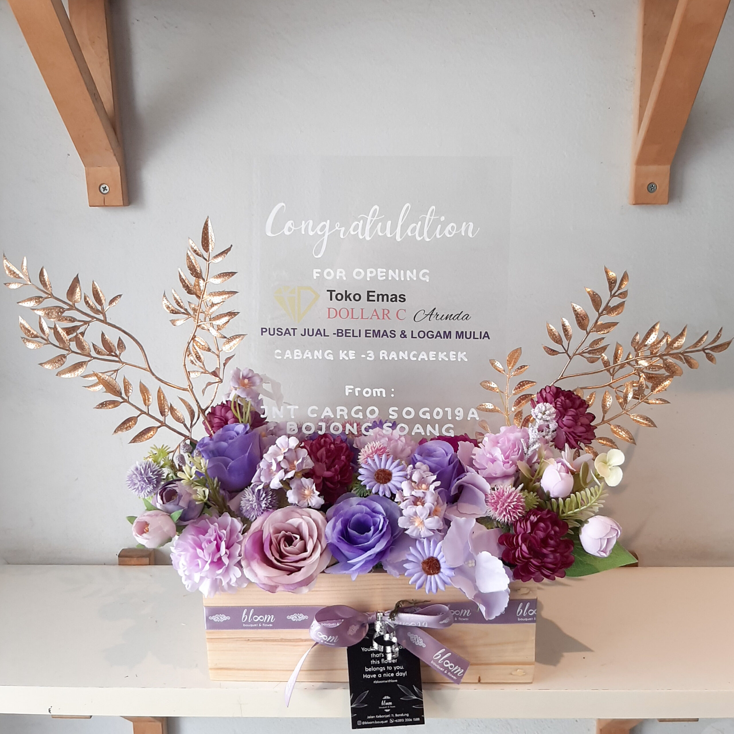 Artificial Acrylic Signage A4 in Purple Gold