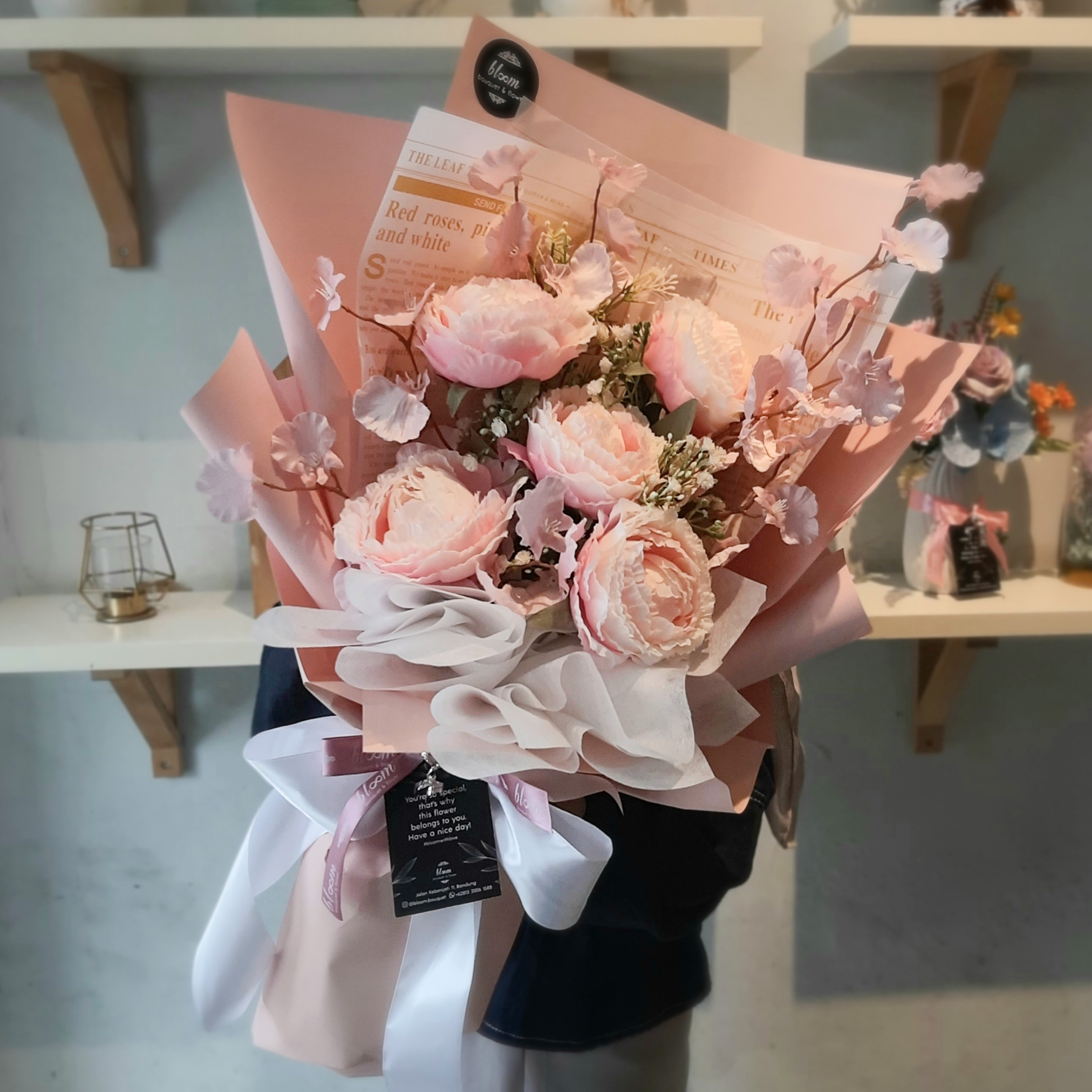 Artificial Peony in Nude Pink Bouquet