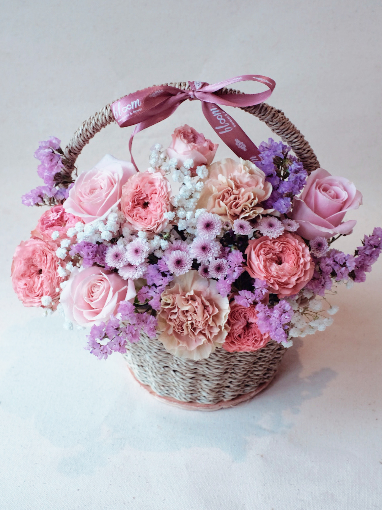 Fresh Mix Peachy Purple in Rattan Basket